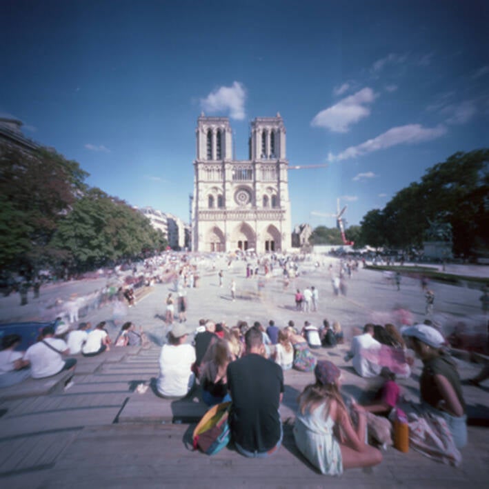 Sopra immagini pinhole ottenute a Parigi il 12 luglio del 2025